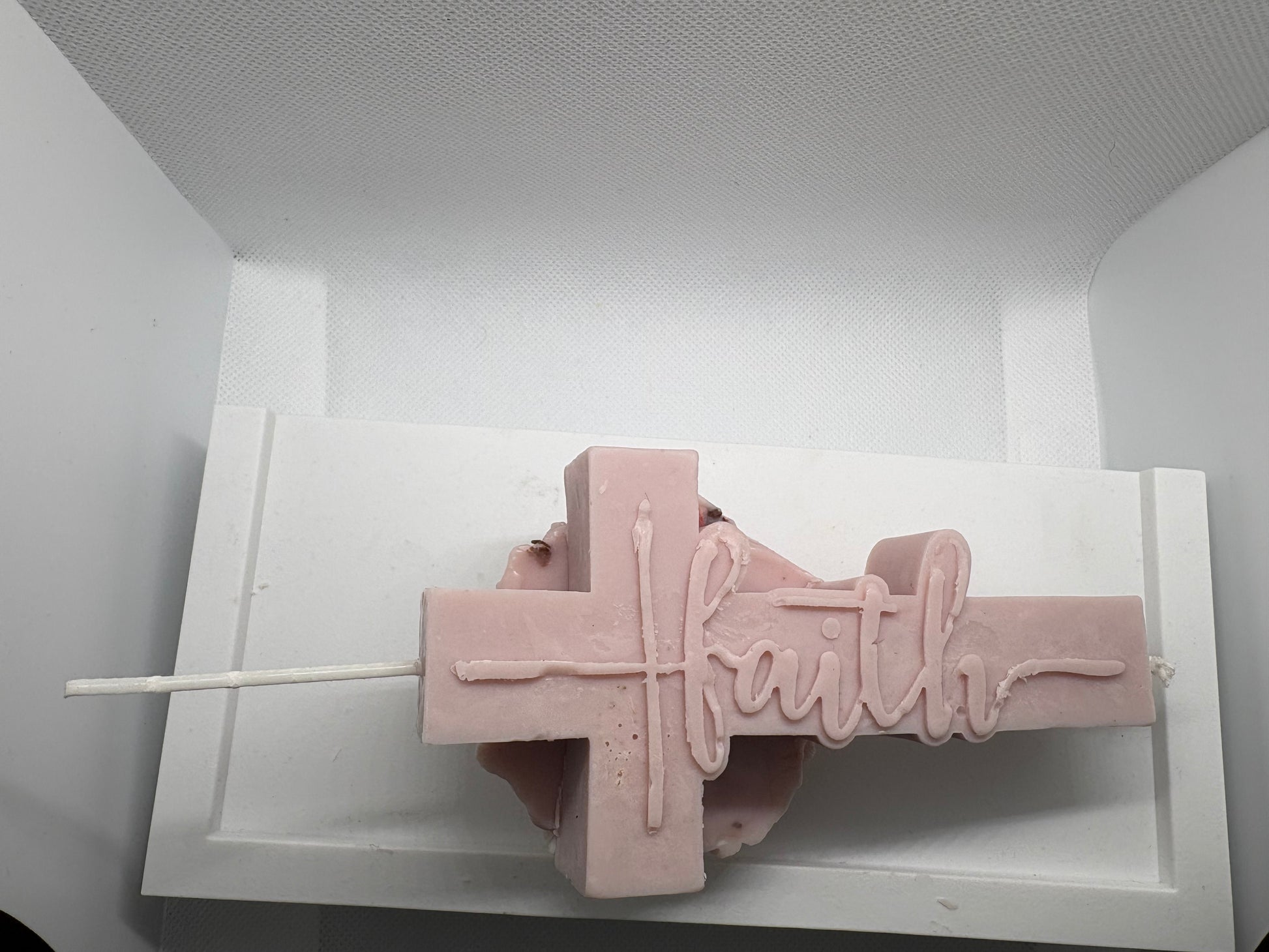 That’s a beautiful candle design! Since it’s a cross-shaped candle with “faith” scripted across the front and a detailed rose on the back, the name should highlight both the spiritual symbolism and the elegant artistry.